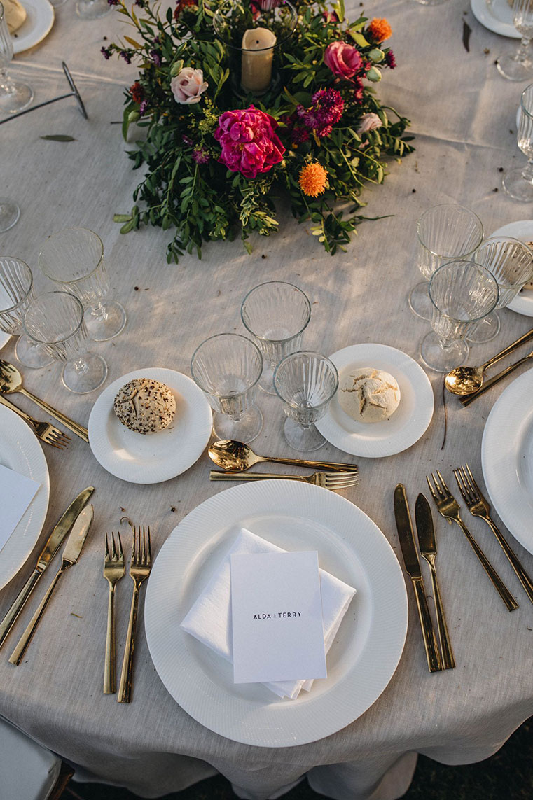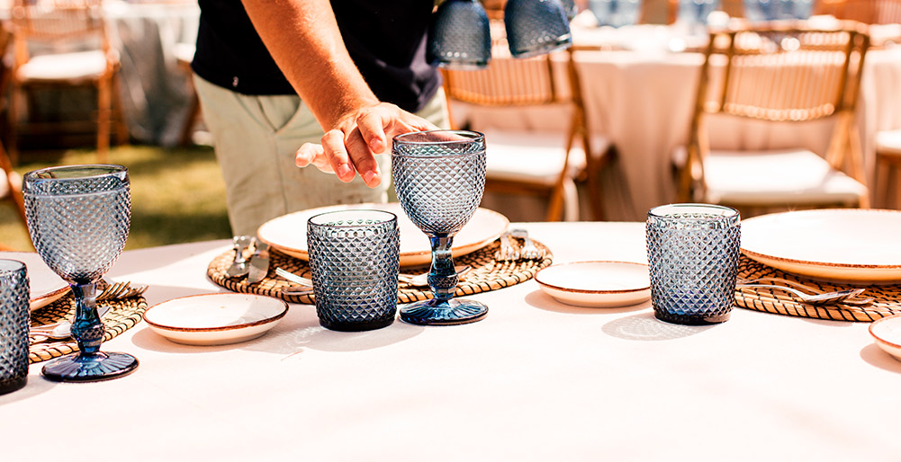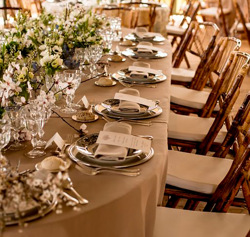 Todo el recinto en el que se celebra la boda está decorado según los gustos de la pareja, por lo que la decoración de las mesas es importante. Ten en cuenta la elección de la mantelería, la cubertería, la iluminación… Es importante que todos los elementos sobre la mesa compartan un mensaje claro, en el que se una experiencia única.