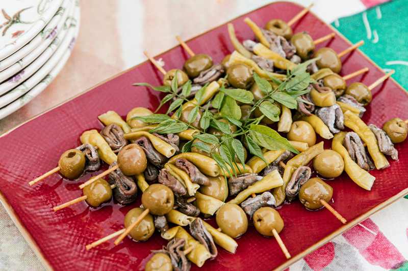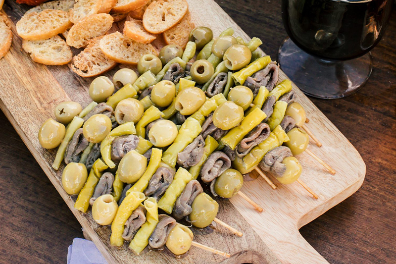 Algunos ejemplos de variantes que podrás preparar por ti mismo en casa son las gildas con verduras asadas, aceitunas rellenas de queso y tomates secos, o bien un plato más sencillo como gildas con queso y jamón, aceitunas con dátiles…