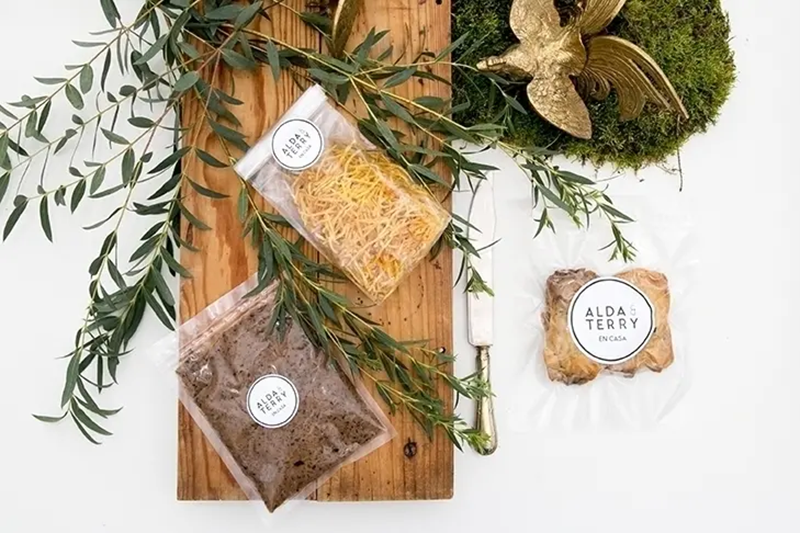 Salsa de champiñores y trufa: Chalota, setas shitake, nata, trufa, aceite de oliva, oporto, oloroso, ajo, pimienta y sal.