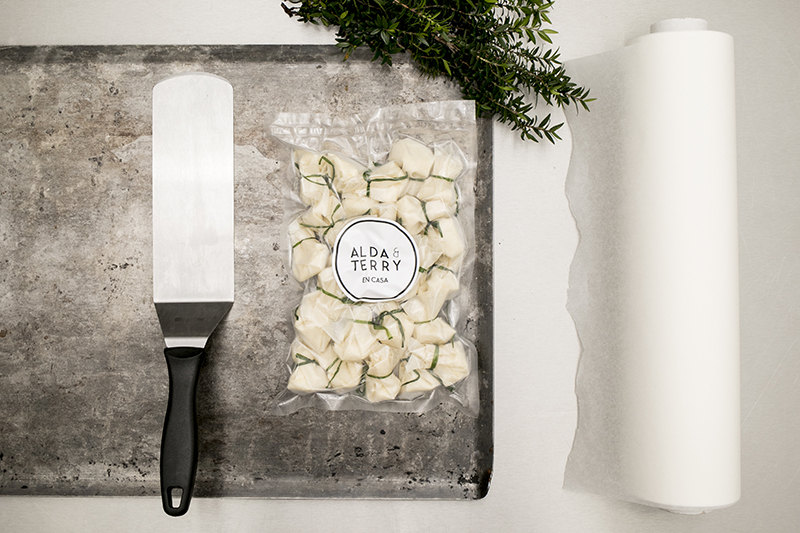 Cortar bolsa para eliminar el vacío y descongelar en nevara. Una vez descongelados, colocarlos en la bandeja del horno ( siempre usar papel de horno!!) y hornear a 180º hasta dorar.