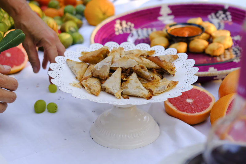 Masa Philo, queso de cabra, miel, cebolla, nueces, sal, aceite de oliva, mantequilla.